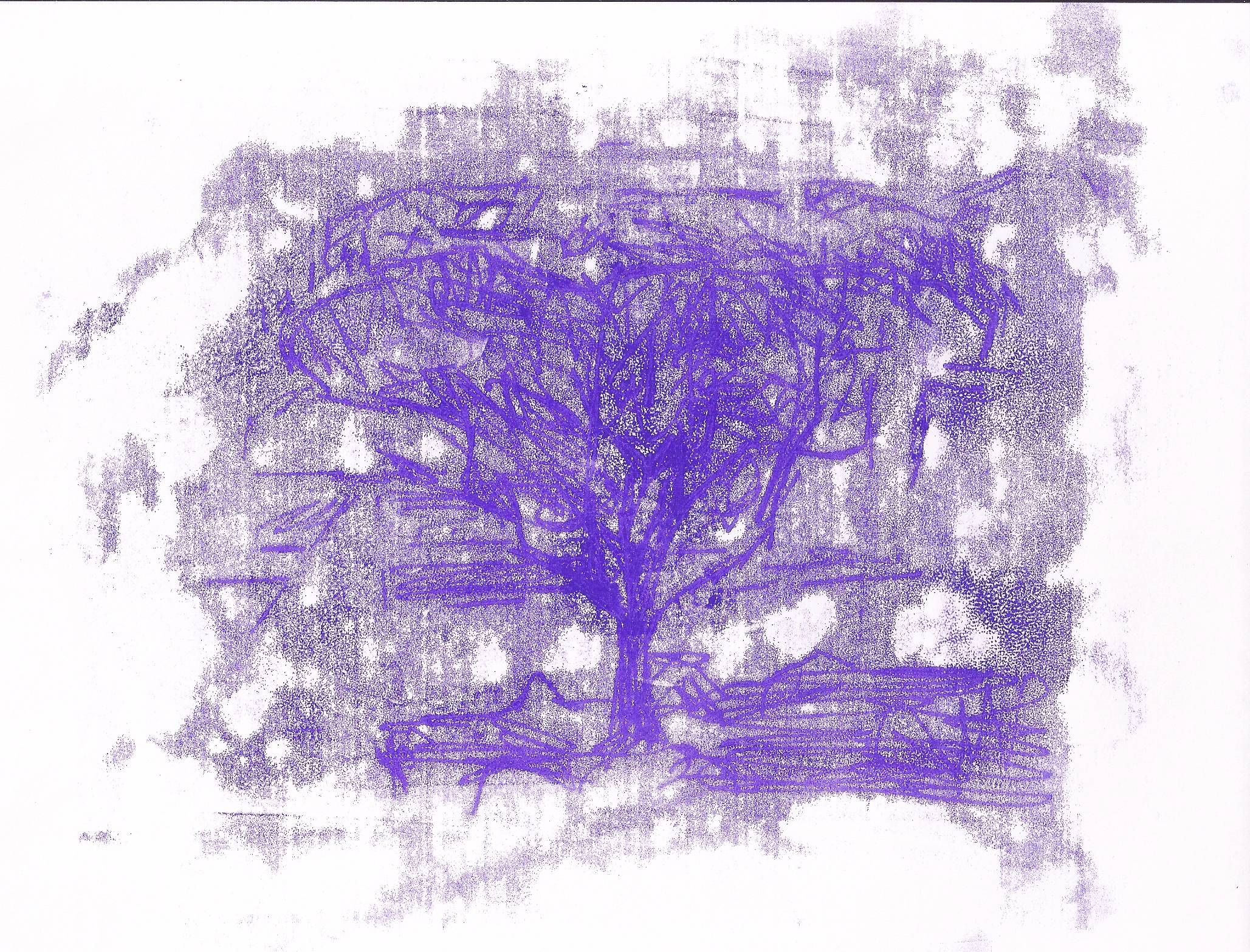 JACKIE…SINCE YOU KNOW I’M NOT VERY ARTISTICALLY INCLINED, BOTH OF YOUR SKETCH’S REPRESENT DIFFERENT TIMES IN ONES LIFE. THE GREEN ONE SEEMS TO BE A TANGLE WHERE THINGS AREN’T CLEAR BUT ANXIETY IS AND HAS LEFT ONE A LITTLE TWISTED. THE PURPLE/BLUE SKETCH SEEMS TO HAVE THE FEELING OF HIGH WIND BUT THE MIGHTY TREE DEEPLY ROOTED IS BEARING UP WELL. BY THE WAY, I LOVE THE PHOTO…ANOTHER SIDE OF YOU.